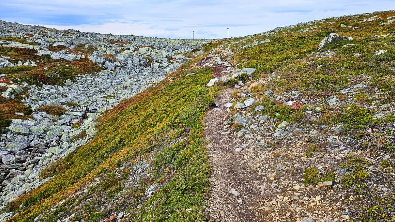 Mit jedem Abschnitt verändert sich die Umgebung ein wenig. Die Bäume werden niedriger, das Gelände öffnet sich, und nach und nach beginnt das Fjäll.