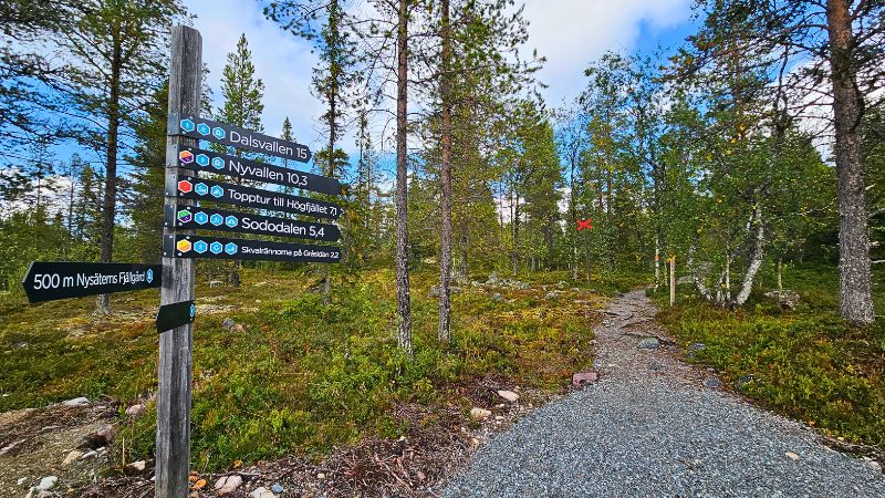 Die Wanderwege sind gut ausgeschildert, dennoch bewegt man sich in echter Natur. Wetter kann sich im Fjäll schnell verändern, deshalb gehören gute Wanderschuhe, ausreichend Wasser und – je nach Jahreszeit – auch Mückenschutz zur Grundausstattung.