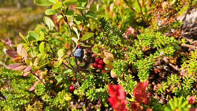 Am Wegesrand wachsen überall Blaubeeren.