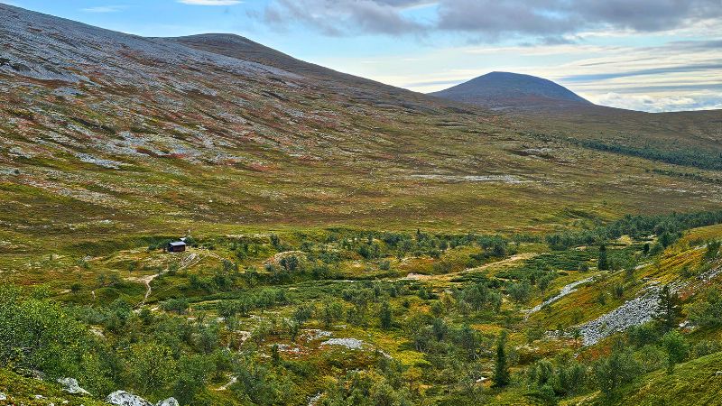 Das Sododalen liegt eingebettet zwischen den Höhen des Sonfjället-Massivs. Durch das Tal zieht sich der Bach Sodan, während rundherum sanfte Höhenzüge ansteigen. Im Sommer blühen entlang des Wassers alpine Pflanzen, und mit etwas Glück lassen sich im Herbst sogar Bären in der Ferne beobachten.